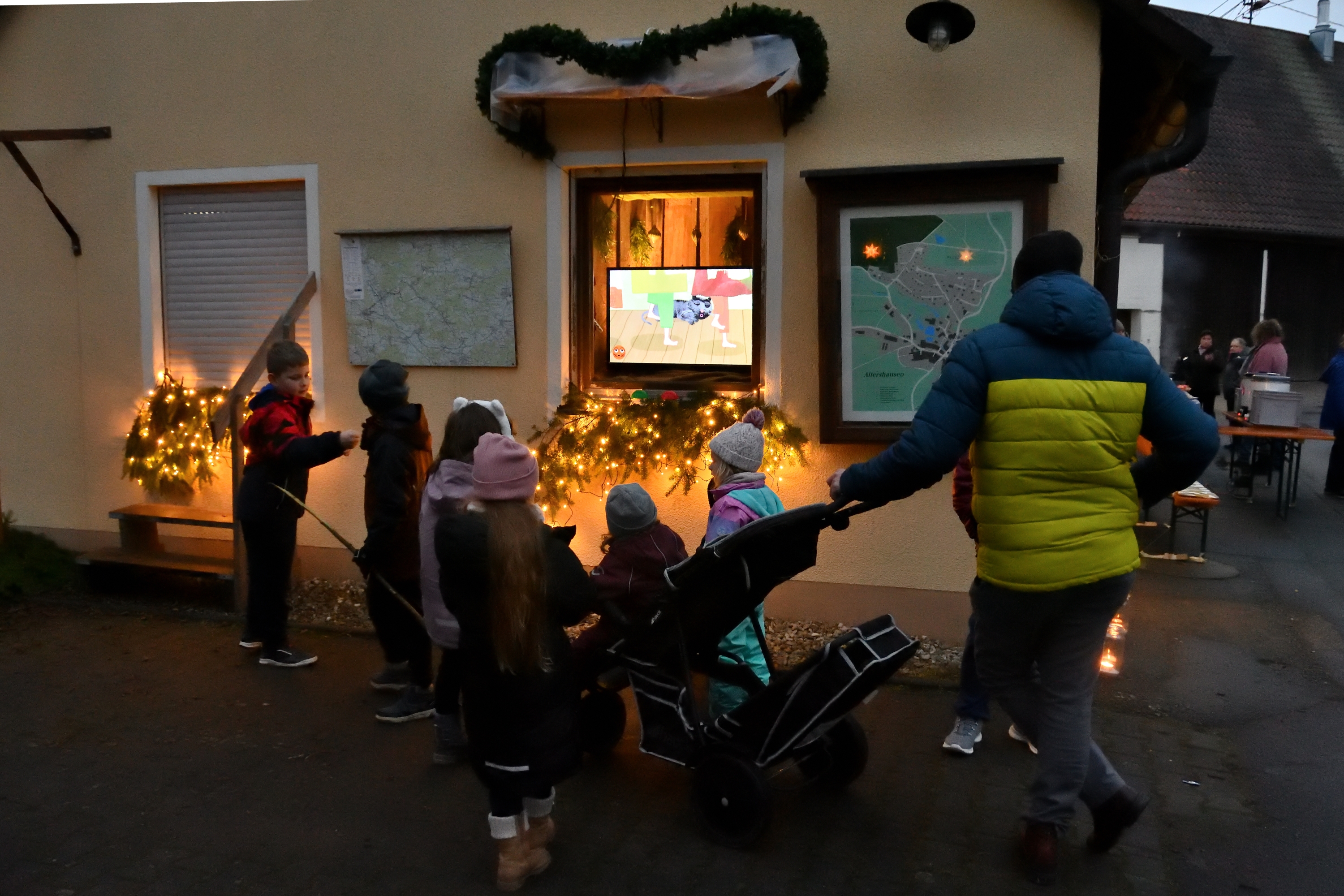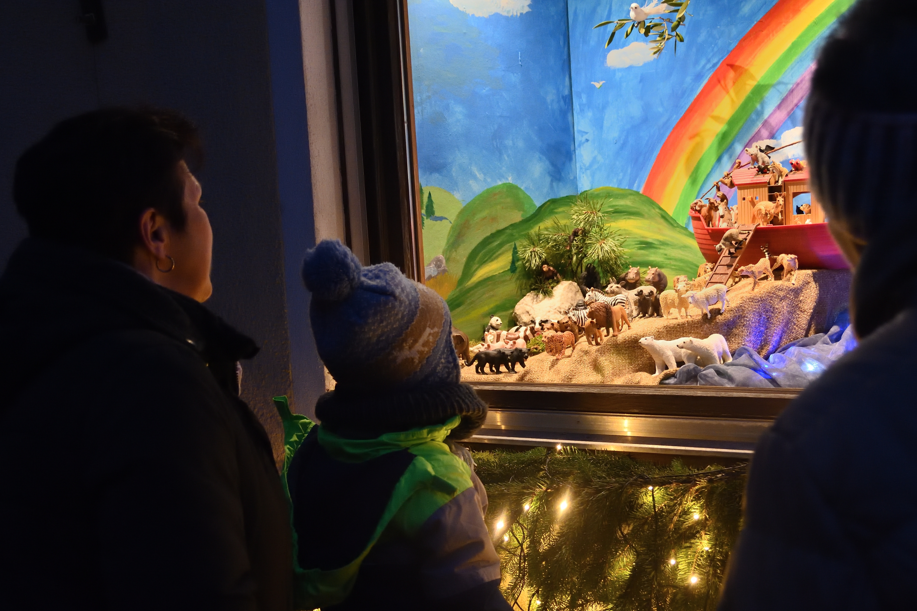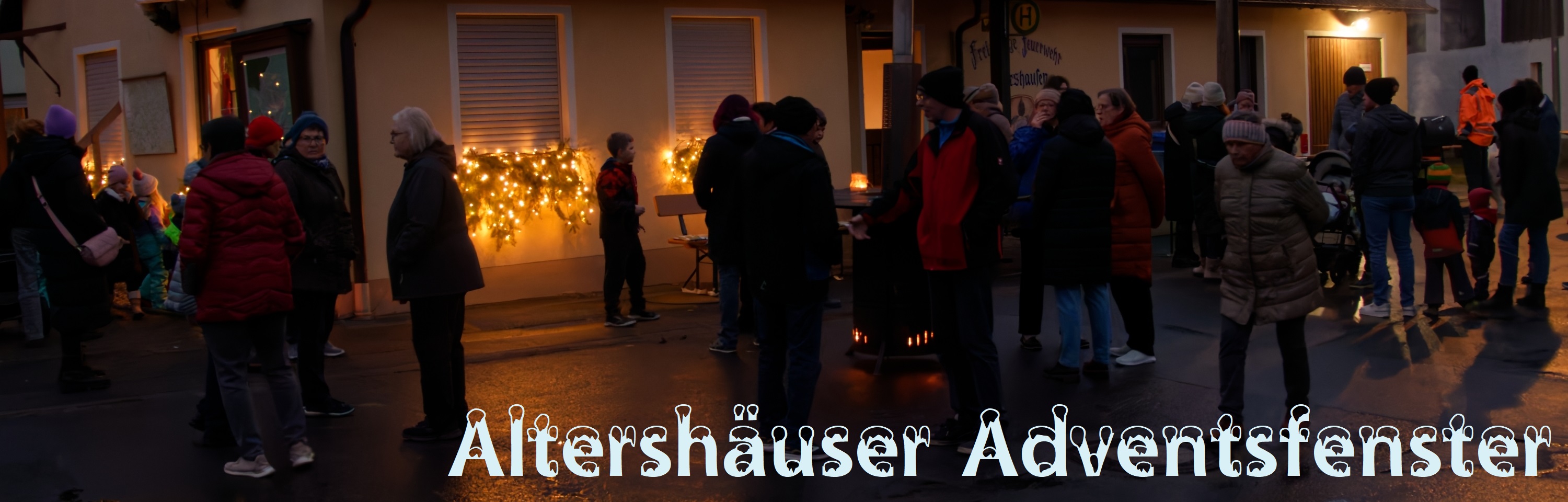 Das diesjährige Programm der Altershäuser Fensterbastler leuchtete anfangs in frostiger Abenddämmerung … -6 °C zum 1. Advent und +2 °C eine Woche später. Nun verspricht der Deutsche Wetterdienst eine trockene Aufwärmung zum 3. Advent … 6 bis 8 °C und wechselnd bewölkt. Schauen wir mal was wirklich kommt! Am 1. Advent zeigte das Fenster ein Menü, womit man Weihnachtsvideos wählen konnte. Nach dem Besuch vom Nikolaus am 2. Advent, der über Noahs Arche predigte, zeigte das 2. Fenster beim Öffnen die Arche selbst. Zum 3. Adventssamstag um 16.30 Uhr kommt der Kleinweisacher Posaunenchor, und wie immer weht der gemischt Duft von Bratwurst und Glühwein durch die Plärrerluft. |