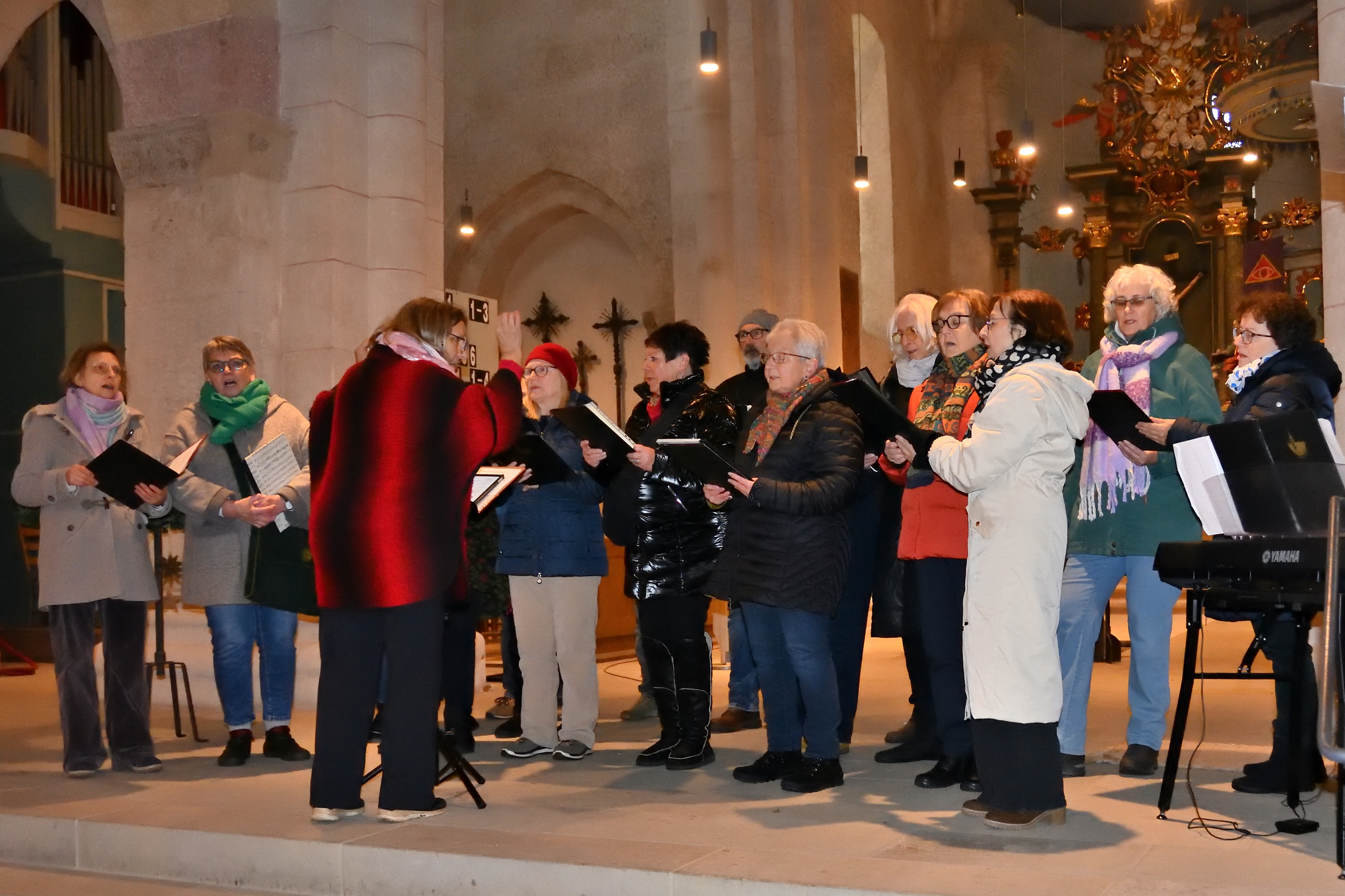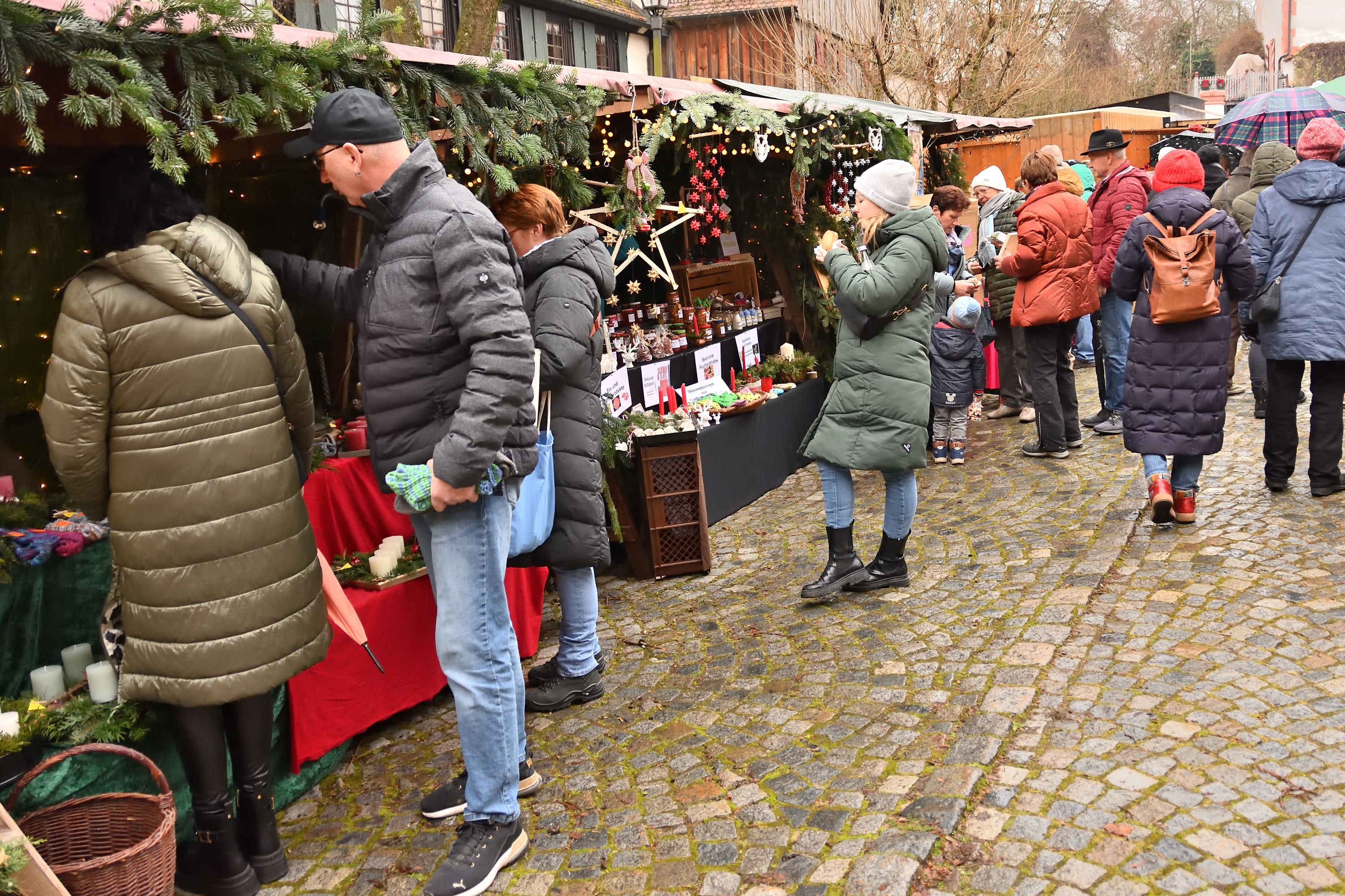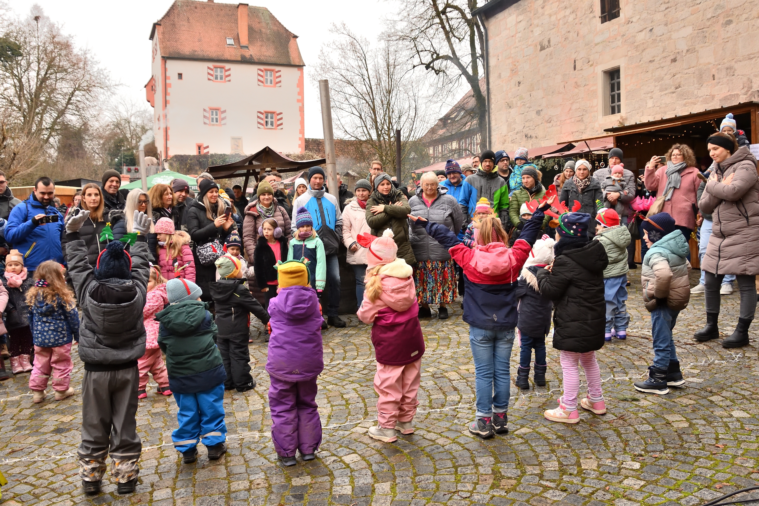Grauer Himmel, Nieselregen, Kälte … in Münchsteinach selbstverständlich auch dann die Formel für eine erfolgreiche Veranstaltung, diesmal der alljährliche Adventsmarkt. So war es wieder am Sonntag, den 1. Advent (November 30). Mit Bratwurstduft, Glühwein und dem Loscher Winterbier braucht man nicht länger an Petrus und seine unfreundliche Haltung denken. Als Erste bewiesen das stolze Eltern und Familien als ihre Kindergartenkinder das große Publikum mit Tanz und Gesang amüsierten. 1. Bürgermeister Jürgen Riedel folgte mit seinem letzten Adventsmarktgruß. Er kandidiert nicht für die Wiederwahl im März. Nach dem Bürgermeister erschien das Christkind in Begleitung seiner Engel, um das Protokoll zu lesen. Der Marktbetrieb ging dann los. Das Brot für die Welt Café hatte schon Kaffee und Kuchen bereit, um die Besucher aufzutauen. Die nasskalten Kinder haben sich bei Bastelarbeit im 1. Stock der Münsterklause erwärmt als Christine Fobbe in der arktischen Kälte des Nikolausmünsters ihr Eröffnungswort zum Adventskonzert der Münchsteinacher Chöre sprach. Es musizierten sowohl der Singkreis, das Chörlein und der Männergesangverein als auch Christine Fobbe selbst im Solo mit einer beeindruckenden Interpretation von Panis angelicus. Nach dem Chorkonzert, weiterhin in eisiger Luft, hat der Posaunenchor ein Standkonzert mit Leiter Hans Loscher angeboten. Mit ihrer letzten Note begann allmählich der Marktausklang und die fröstelnden Menschen gingen heimwärts, gezielt auf die eigene warme Stube.