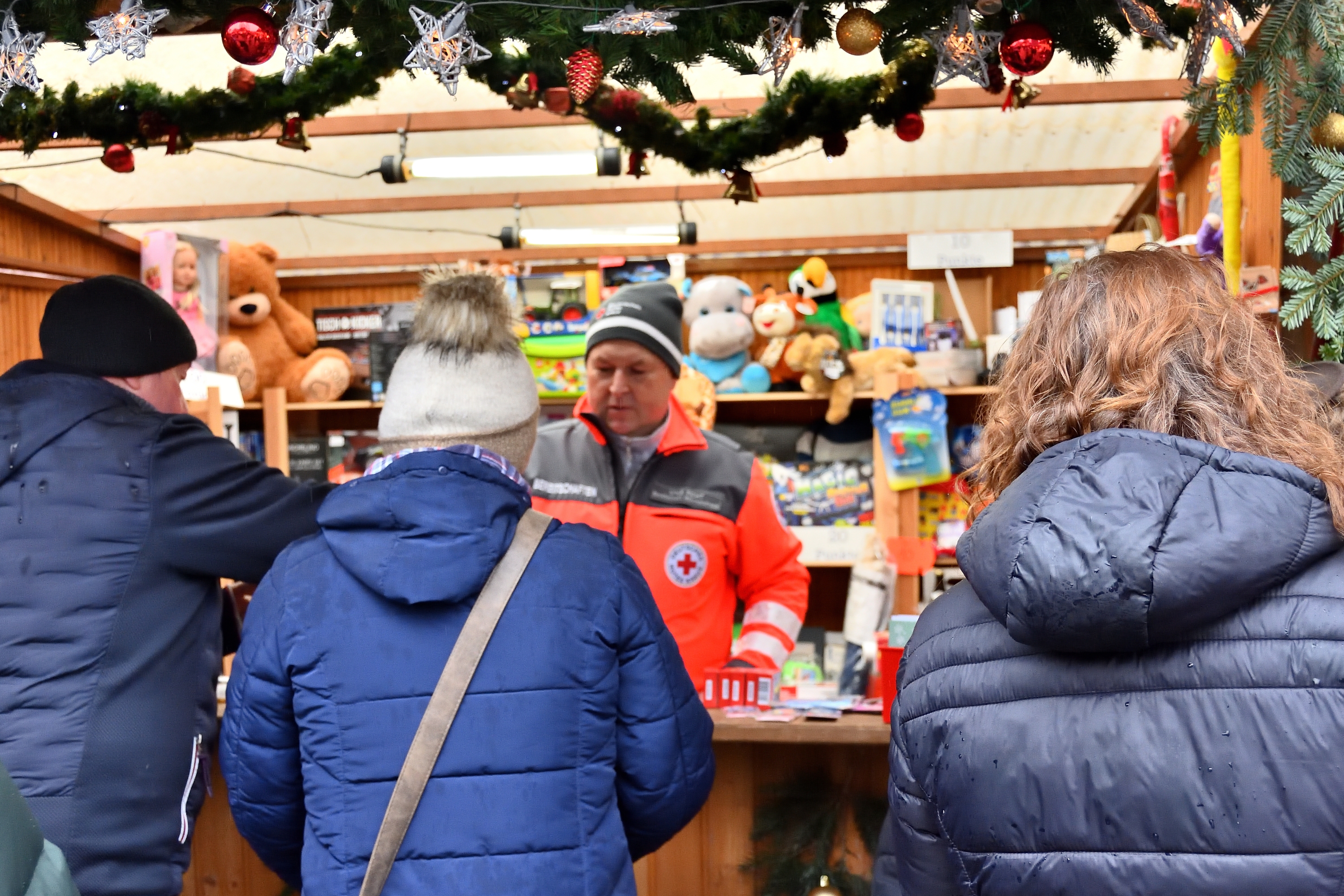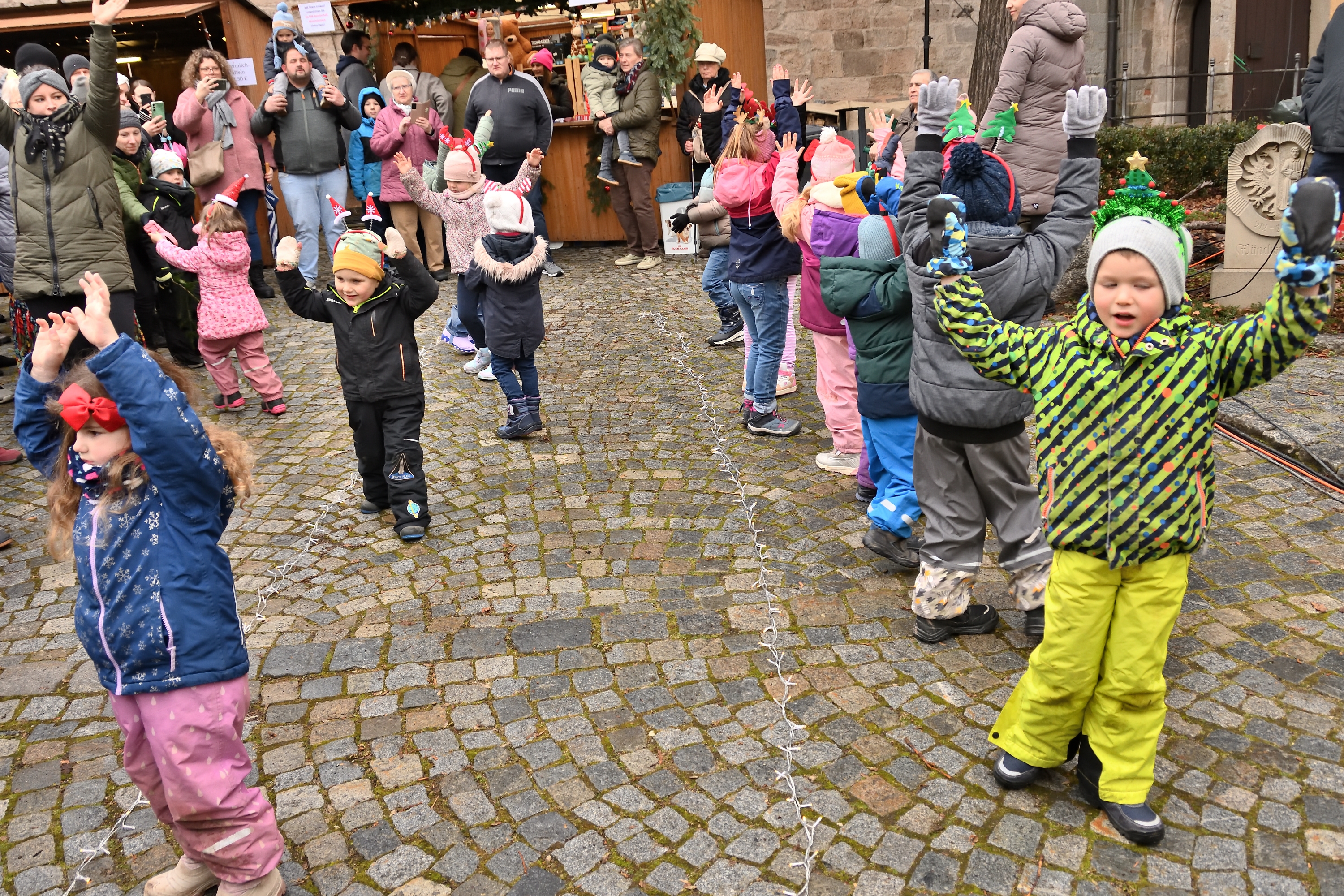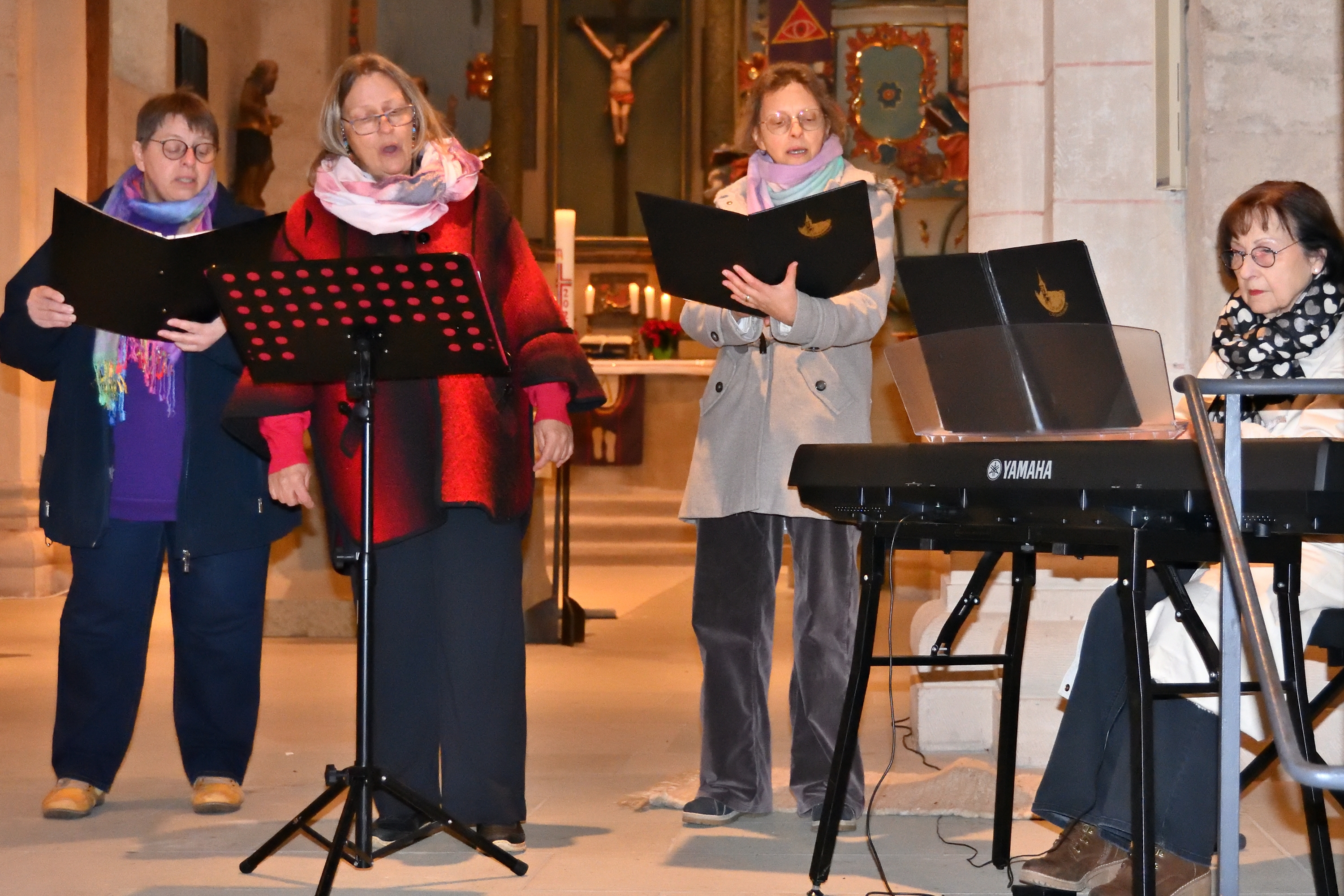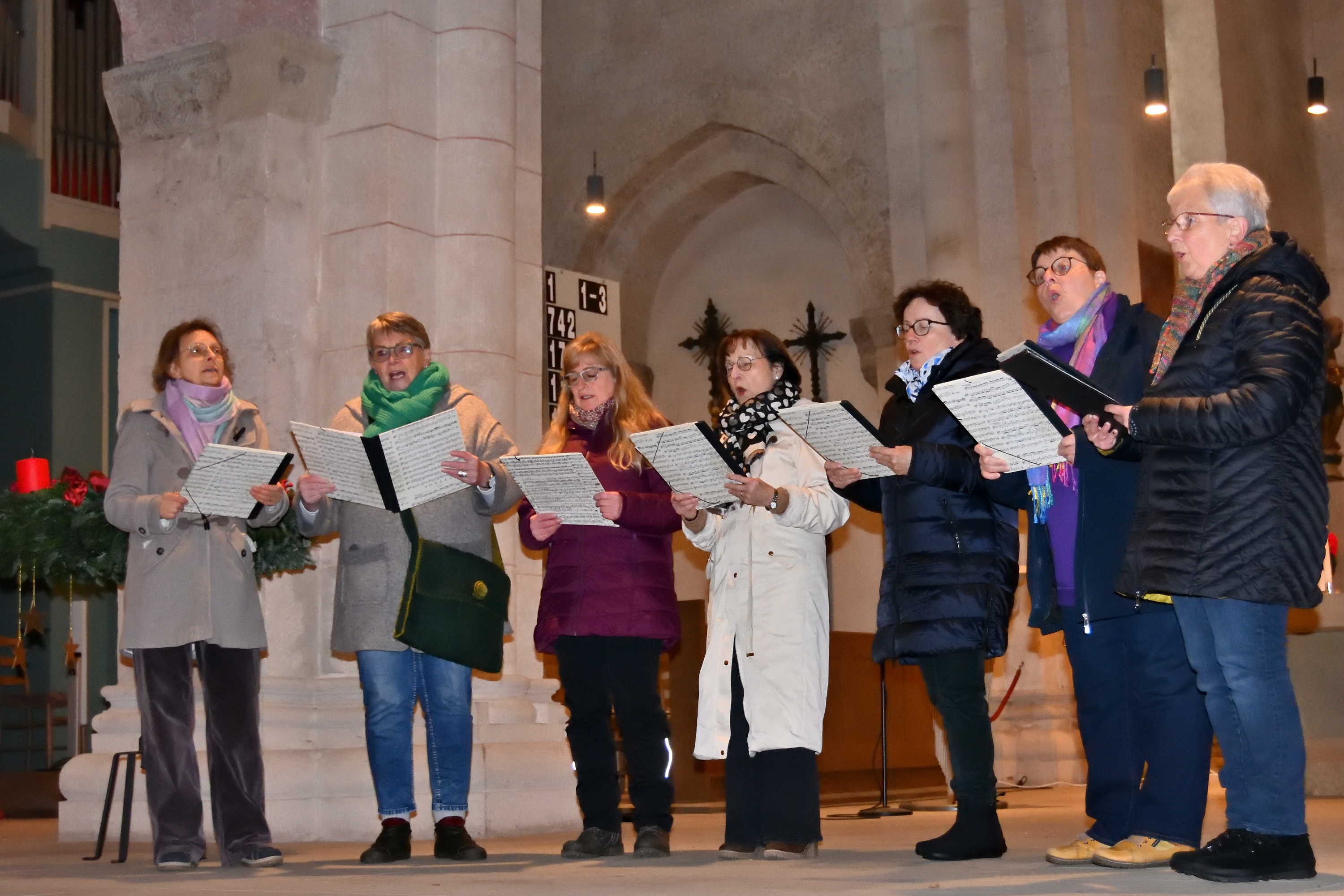 Grauer Himmel, Nieselregen, Kälte … in Münchsteinach selbstverständlich auch dann die Formel für eine erfolgreiche Veranstaltung, diesmal der alljährliche Adventsmarkt. So war es wieder am Sonntag, den 1. Advent (November 30). Mit Bratwurstduft, Glühwein und dem Loscher Winterbier braucht man nicht länger an Petrus und seine unfreundliche Haltung denken. Als Erste bewiesen das stolze Eltern und Familien als ihre Kindergartenkinder das große Publikum mit Tanz und Gesang amüsierten. 1. Bürgermeister Jürgen Riedel folgte mit seinem letzten Adventsmarktgruß. Er kandidiert nicht für die Wiederwahl im März. Nach dem Bürgermeister erschien das Christkind in Begleitung seiner Engel, um das Protokoll zu lesen. Der Marktbetrieb ging dann los. Das Brot für die Welt Café hatte schon Kaffee und Kuchen bereit, um die Besucher aufzutauen. Die nasskalten Kinder haben sich bei Bastelarbeit im 1. Stock der Münsterklause erwärmt als Christine Fobbe in der arktischen Kälte des Nikolausmünsters ihr Eröffnungswort zum Adventskonzert der Münchsteinacher Chöre sprach. Es musizierten sowohl der Singkreis, das Chörlein und der Männergesangverein als auch Christine Fobbe selbst im Solo mit einer beeindruckenden Interpretation von Panis angelicus. Nach dem Chorkonzert, weiterhin in eisiger Luft, hat der Posaunenchor ein Standkonzert mit Leiter Hans Loscher angeboten. Mit ihrer letzten Note begann allmählich der Marktausklang und die fröstelnden Menschen gingen heimwärts, gezielt auf die eigene warme Stube.