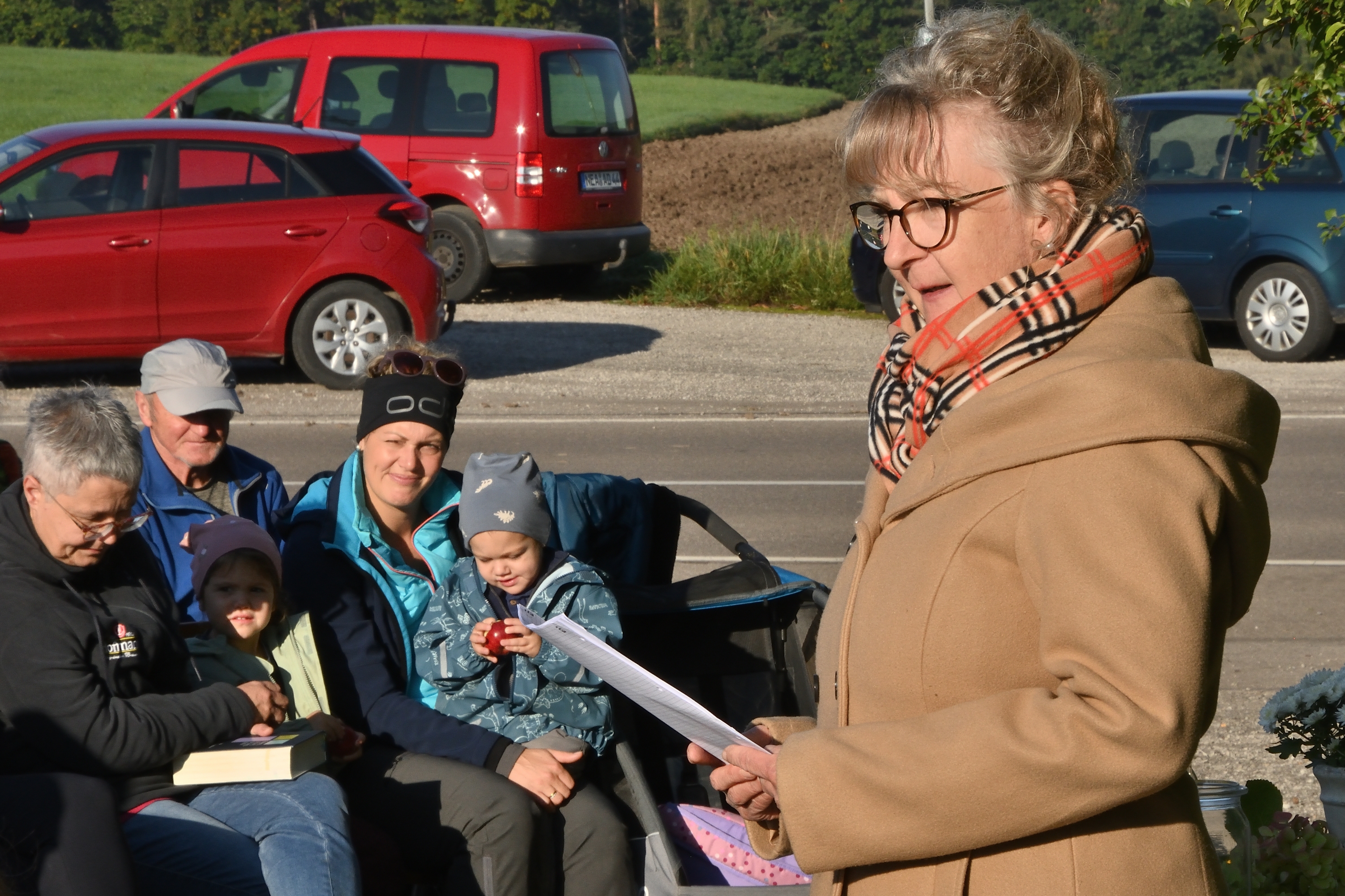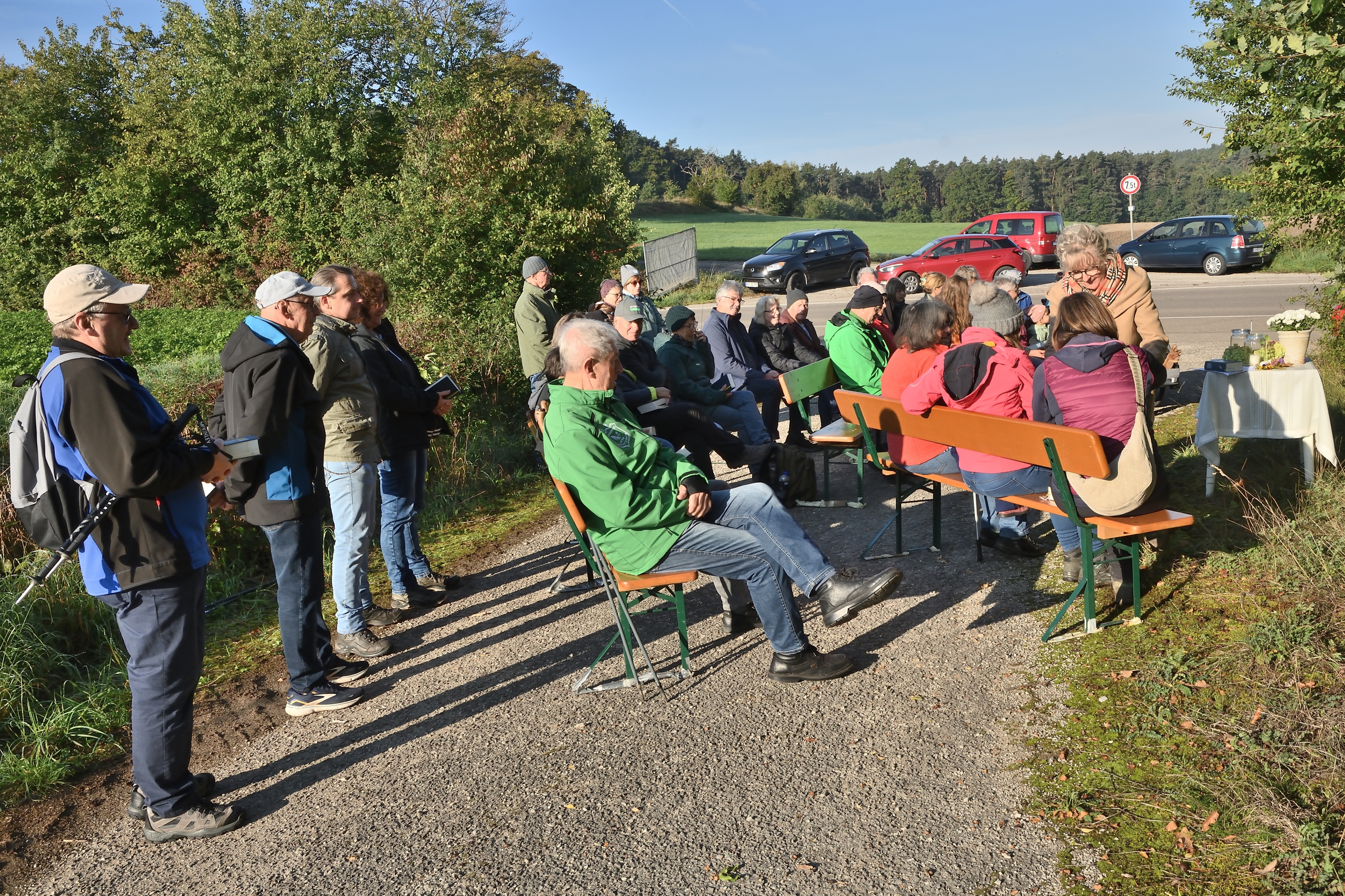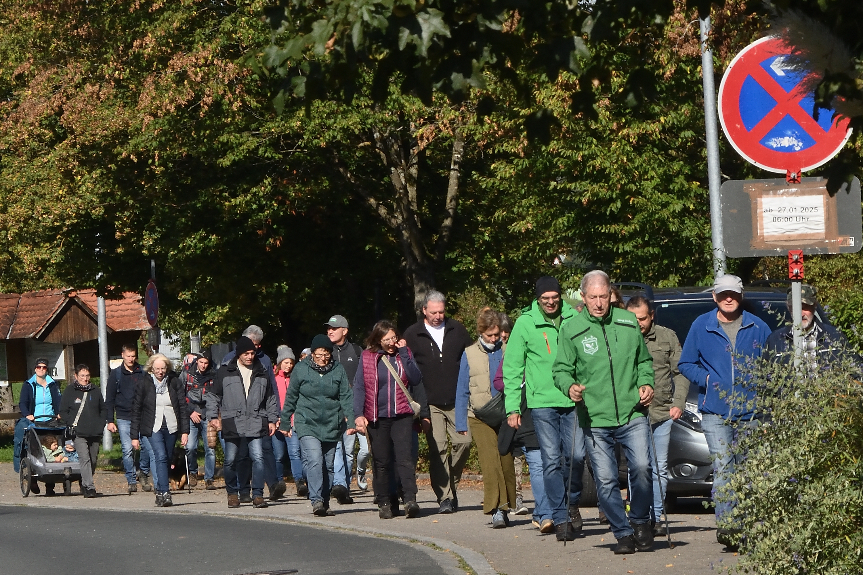 Der Wandertag 2025 begann mit einer eisigen Temperatur von 0° C, aber als der Andacht mit Lektorin Elke Döller ein paar Stunden später begann, strahlte die Sonne und wärmte schnell die ca. 35 Wanderer auf. Nach ein bisschen mehr als 2 Stunden kam die Gruppe aus Altershausen, Abtsgreuth, Hombeer und Kienfeld nach Münchsteinach und kehrte in den neu renovierten Loscher Brauerei-Gasthof Krone ein. Dort trafen sie 16 zusätzliche Nachbarn, die nicht mitwandern konnten, für ein paar gemütlichen Stunden am Tag der deutschen Einheit, bevor es weiter auf Schusters Rappen heimwärts ging. |